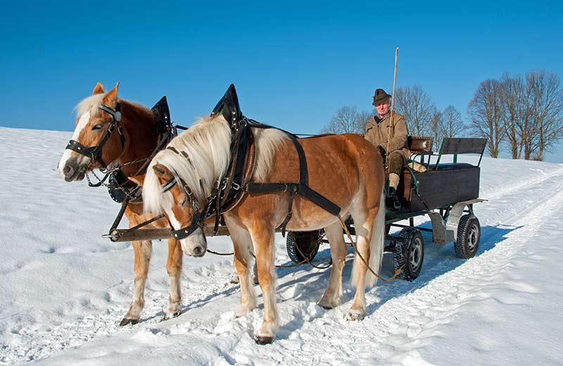 Man möchte fast glauben, eine Fahrt mit dem Pferdeschlitten sei nur etwas für romantische Augenblicke zu zweit. Weit gefehlt: Eine Schlittenfahrt wie zu Großmutters Zeiten begeistert die ganze Familie - denn die Fahrt mit zwei PS gefällt garantiert auch den Kleinen und ist ein besonderes Erlebnis, von welchem Groß und Klein noch lange erzählen werden. Und vielleicht entdecken Sie ja während der Fahrt ein Eichhörnchen auf Proviantsuche oder zwei scheue Rehaugen, die versteckt aus dem Wald blicken?